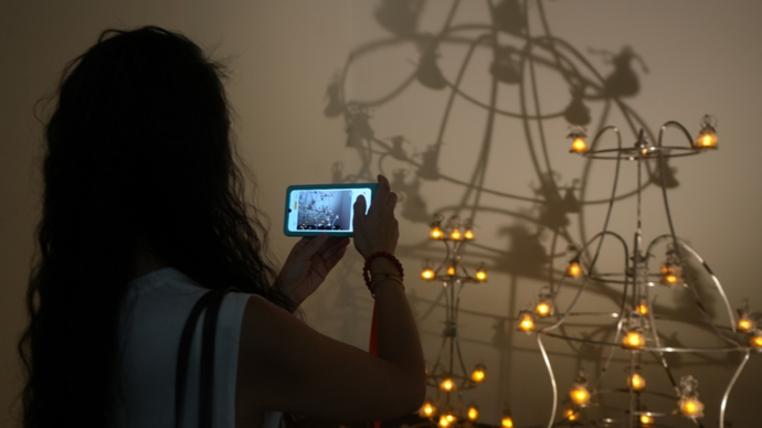 目前,敦煌当代美术馆正在展出的2025年“登临出世界”大展,该展以“塔”为探究焦点,汇聚了自东汉至元代跨越千年的20余件珍贵文物,以及来自20余件(组)当代创作。每一位进展厅的游客可先在前台领一台手机模样的设备,与讲解器不同的是,当游客看到感兴趣的展品,只需随手拍个照片,该设备就能自动识别,生动讲述文物背后的历史典故和科学知识。