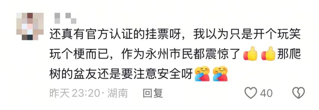 据该工作人员介绍,“树上挂票”源于主场体育场的“地方特色”——体育场周边种植有树木,且树木高度仅1米多,“正常成年人都能自行攀爬上下”。近期永州队主场赛事关注度较高,“大家观赛热情很高,又买不到票,就有观众想到这种方法来看比赛,这也是好事,我们就推广一下。”