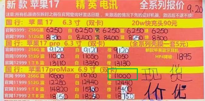“橙色256G的iPhone 17 Pro Max有现货吗?多少钱?”面对《中国基金报》记者的问价,在深圳华强北远望数码商城档口的商家小恋(化名)赶忙说有现货,并拿起柜台上的计算器,悄悄按下几个数字向记者示意——11000元。