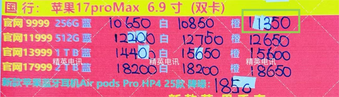 这时是9月20日下午4点左右,而翌日,记者再度前往同一档口,向小恋询价同色同型号的手机时,价格已涨至11350元。“发售第一天也差不多这个价,目前价格就是实时变动的,所以我们随时都会更新新的价目表。”小恋告诉记者。
