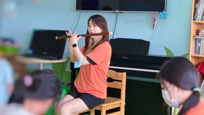2017年底起,蔡晓钰参加公益组织,每月去上海各地医院为小病人演奏笛子。八年来,她从个人参与到召集淮剧团同事、朋友一起做公益,“我吹笛子,其他人弹钢琴、拉大提琴、弹琵琶。”