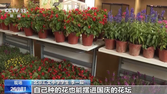 北京汇文中学学生 李一辰:我领到了一盆“四季海棠”的小苗,当时只有四厘米高,一共只有四片小叶,现在它已经开花,长得非常旺盛,我特别开心,自己种的花儿也能摆进国庆的花坛,被更多人看到,我觉得很光荣。