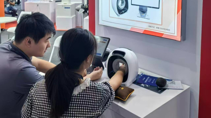 在工博会高校展区中,采用最新的柔性传感芯片与实体机器人技术,为患者提供精准的面诊、脉诊、舌诊、问诊等中医智能诊疗体验。北京大学基于上百万中医脉象、舌象等实证实方医疗数据,运用神经网络学习、深度学习等算法打造了一款“中医智能AI机器人”,它可以为每一位用户生成精准、专业、全面的中医健康管理报告。该项目也引来了不少观众驻足。