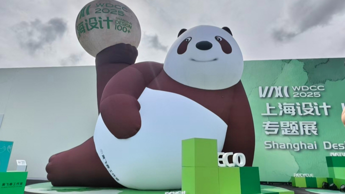 每一个打开今年设计之都大会的参观者,都不会忘记一只脚顶月球的巨大熊猫,它是上海奕木艺术设计顾问有限公司创始人黄飞春设计的“秦岭组F4”(熊猫七仔、朱鹮、金丝猴和羚牛)之一,原型就是全球第二只圈养的棕色大熊猫“七仔”。