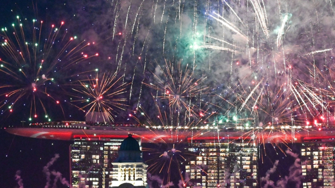 新加坡国庆庆典上的烟花(新华社图)