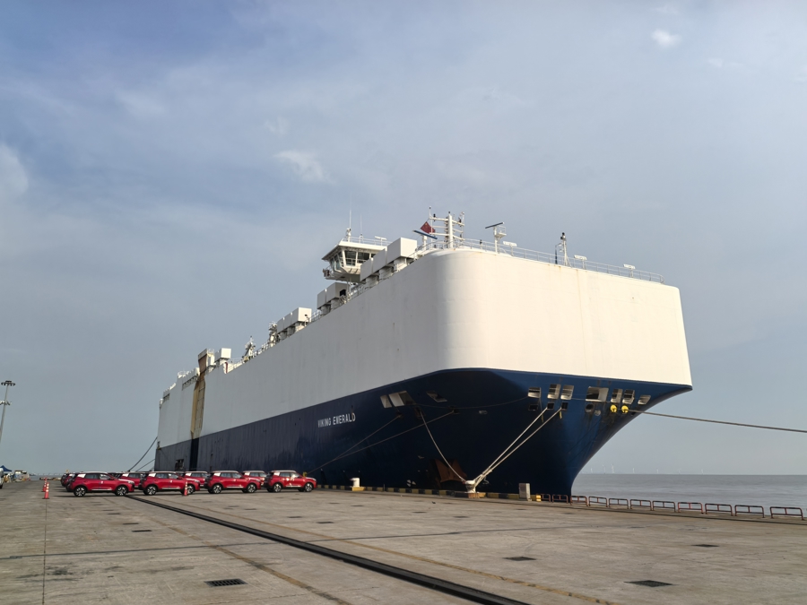 此次首航的“维京翡翠”轮(马绍尔群岛籍)是一艘4300车位的汽车滚装船。据介绍,本航次共装载2330件货物,包括奇瑞、长城、名爵、智己等多个品牌的新能源汽车,以及少量工程车和汽车配件,将直达澳大利亚墨尔本、肯布拉、布里斯班等港口。