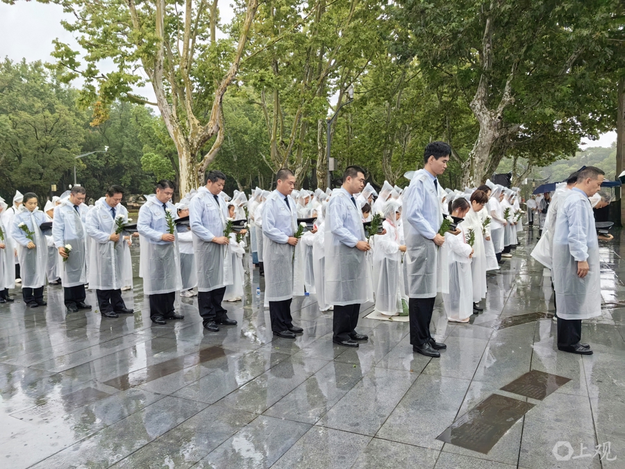 潇潇秋雨,绵绵哀思。今天是我国第十二个烈士纪念日。上午,上海淞沪抗战纪念馆举行烈士纪念日公祭活动,共同向英雄敬献鲜花,缅怀英烈功勋,学习英烈事迹,传承红色基因,汲取奋进力量。