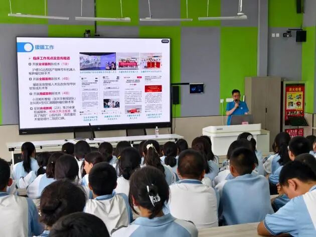 在二号阶梯教室,张俊文医生为同学们带来一场生动的心脏手术科普讲座。他借助图文和案例,深入浅出地介绍了心脏类手术的基本知识,激发了学生对现代医学的浓厚兴趣。