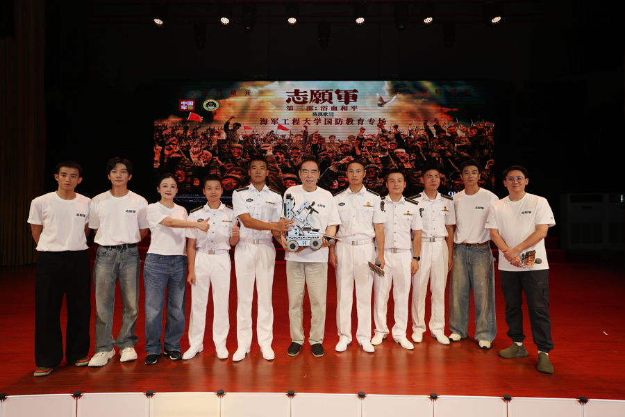 映后交流,导演陈凯歌真切地表示,“我们电影三部曲拍摄了五年时间,是什么支撑我们走过五年,其实就是抗美援朝精神,志愿军的精神我们需要永远传承。”作为海工大“老朋友”的朱亚文,鼓励学员称:“电影中志愿军战士在那样的装备情况下跟敌人争夺阵地,今天你们在富足的教育环境中,可以不断去学习应用我们最精尖的军工成果,希望大家将来以志愿军精神奔赴海疆。”