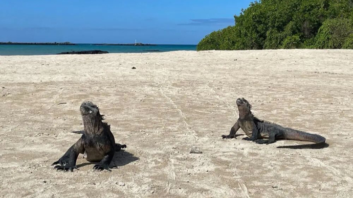 加拉帕戈斯群岛由19座火山岛及众多礁石群组成,所在位置跨越赤道、洋流交汇,不仅孕育了物种丰富的海洋和陆地生物,也塑造了独特多样的生态环境。长椅上呼呼大睡的海狮、公路上溜达的海鬣蜥、礁石缝里“暗中窥伺”的红石蟹、海岸边精致“梳妆”的蓝脚鲣鸟……这里的野生动物不怕人。