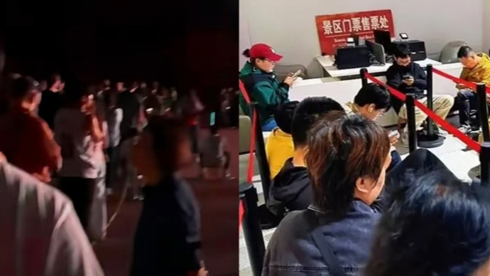 游客凌晨三点排队买票