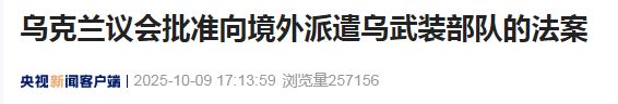 当地时间10月9日,乌克兰最高拉达(议会)以282票赞成,批准了有关将乌克兰武装部队单位派往他国的法案。