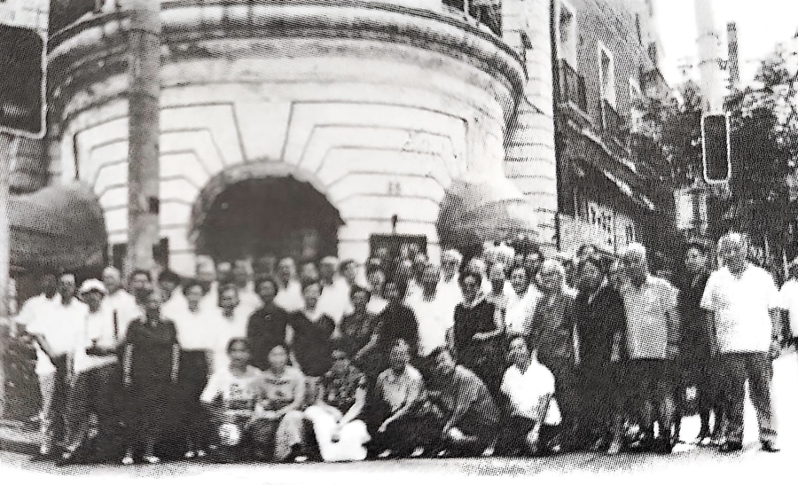 1992年,“孩子剧团”团员在恩派亚大戏院(今淮海中路85号)门前合影。