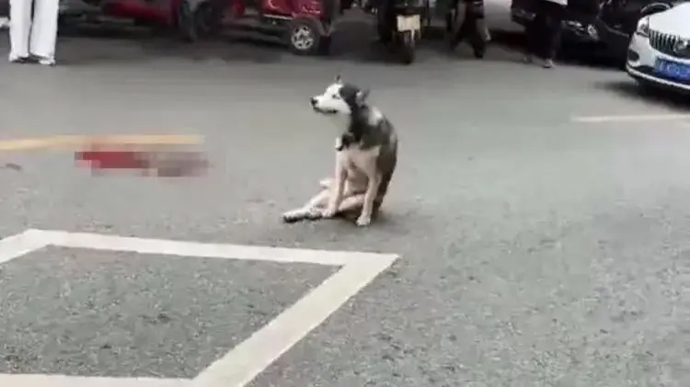 10月10日下午,成都市龙泉驿区西河街道翠竹路附近,一只哈士奇被一男子当街砍伤后不治身亡。