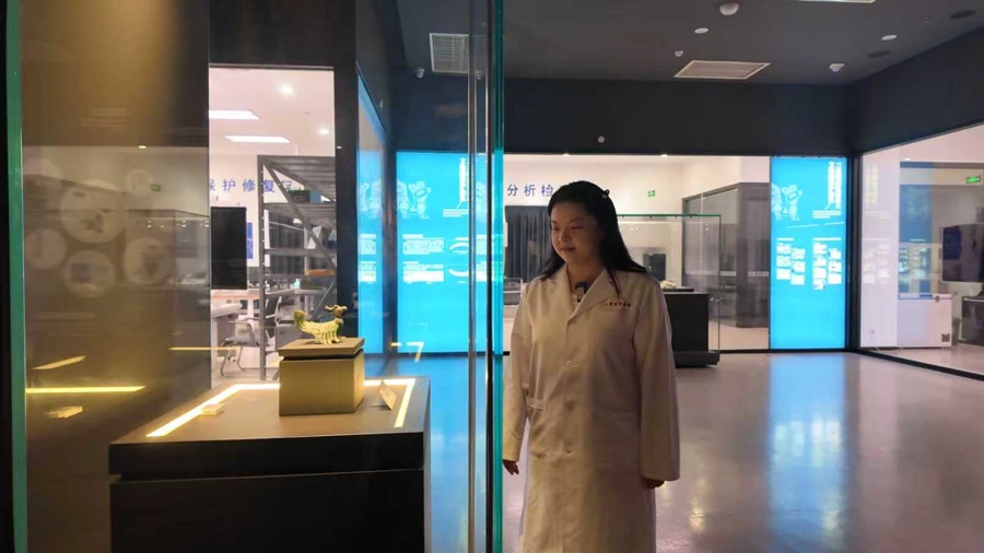 她入职后不久,三星堆文物保护与修复馆对外开放。一面通透的玻璃墙将整个馆分为两个独立区域——文保工作区和游览参观区,“隔着玻璃,观众几乎能贴着工作区内的显微镜,幕后的文物修复工作搬到了台前”。