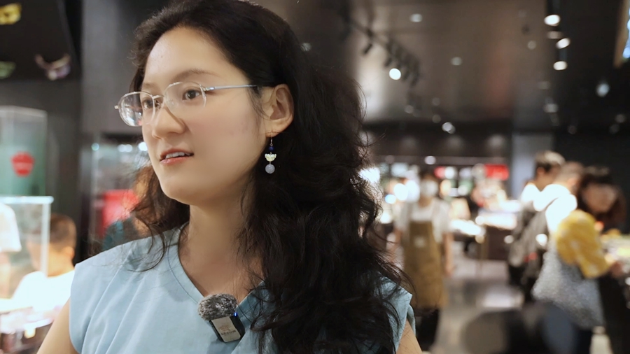 90后三星堆博物馆文化产业部工作人员王泰睿爱美,她试戴了最新的蜀锦非遗三星堆耳环,还带朋友来一起“种草”。