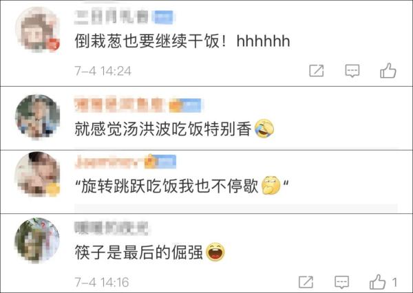 飘着吃、头下脚上吃、转着圈圈吃、“侧躺”着吃……汤哥吃个饭,完全“放飞自我”。
