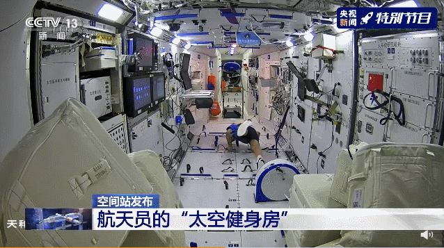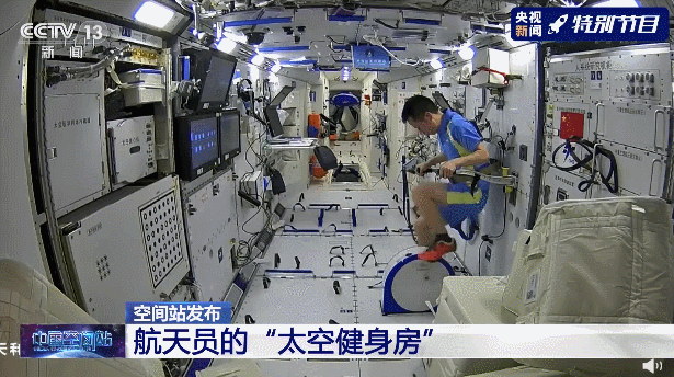 据@央视军事 报道,中国空间站里特别配置了太空跑台、太空自行车等器材,还有拉力器和俯卧撑设施,可以满足航天员日常锻炼的需要。