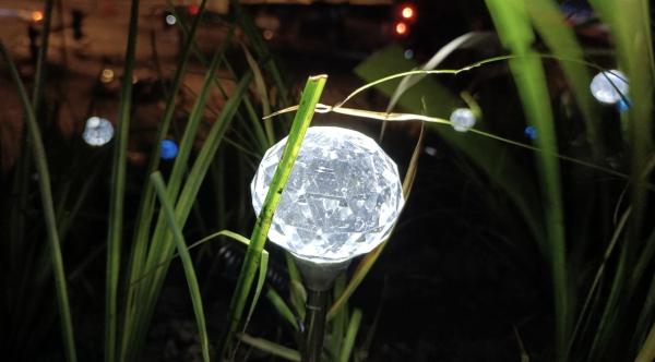 近看,在连廊的转角绿地上,随机散布着许多钻石切割面的水晶球形点光源,不规则的灯光闪烁形成了“手可摘星辰”的意境。桥侧部分封板采用穿孔铝板外包,并安装同等面积的矩阵式网状LED灯珠,模拟星空闪耀的灯光从孔洞中多维度散出。