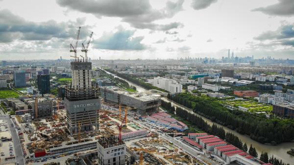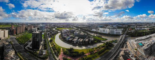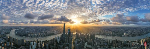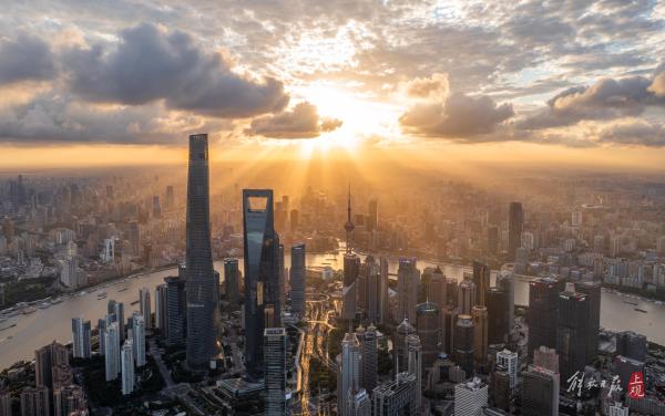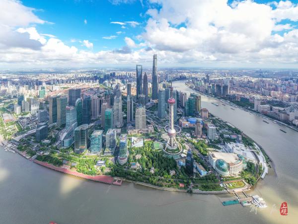 上观新闻记者航拍陆家嘴、张江等区域,大片壮观的云海将天际线点缀得如诗如画。