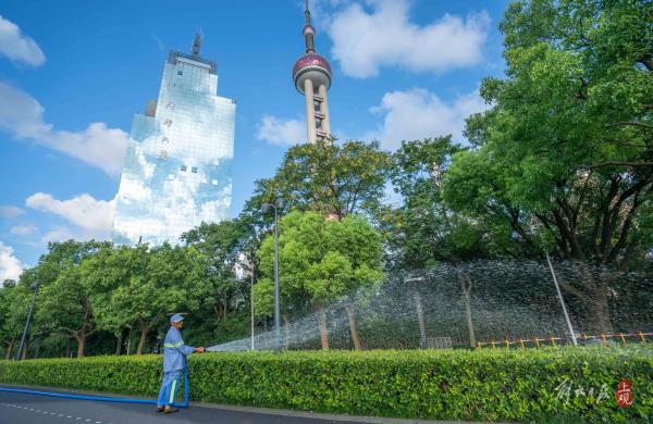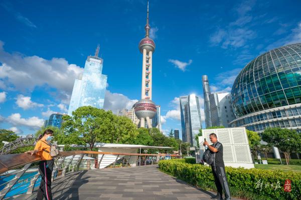 2021年7月19日,申城天空白云如絮,出现蓝天白云的“水晶天”。