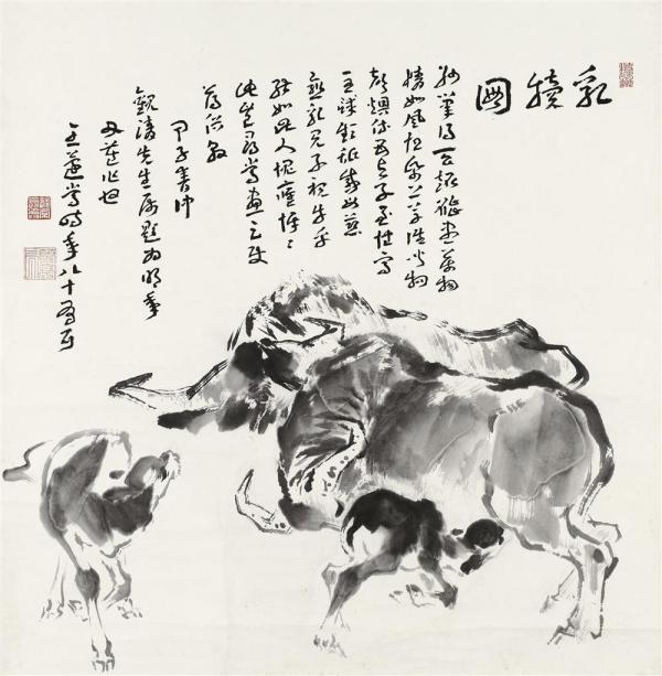 汪观清用徽州水土养育的丹青之情融于水墨,从新安炊烟中牵来“神牛”,一辈子画牛无数。他说:“我自幼喜爱牛,对牛有一种不可言传的亲近感,牛的憨厚、倔强、任劳任怨、造福人类,深深地激励着我。”