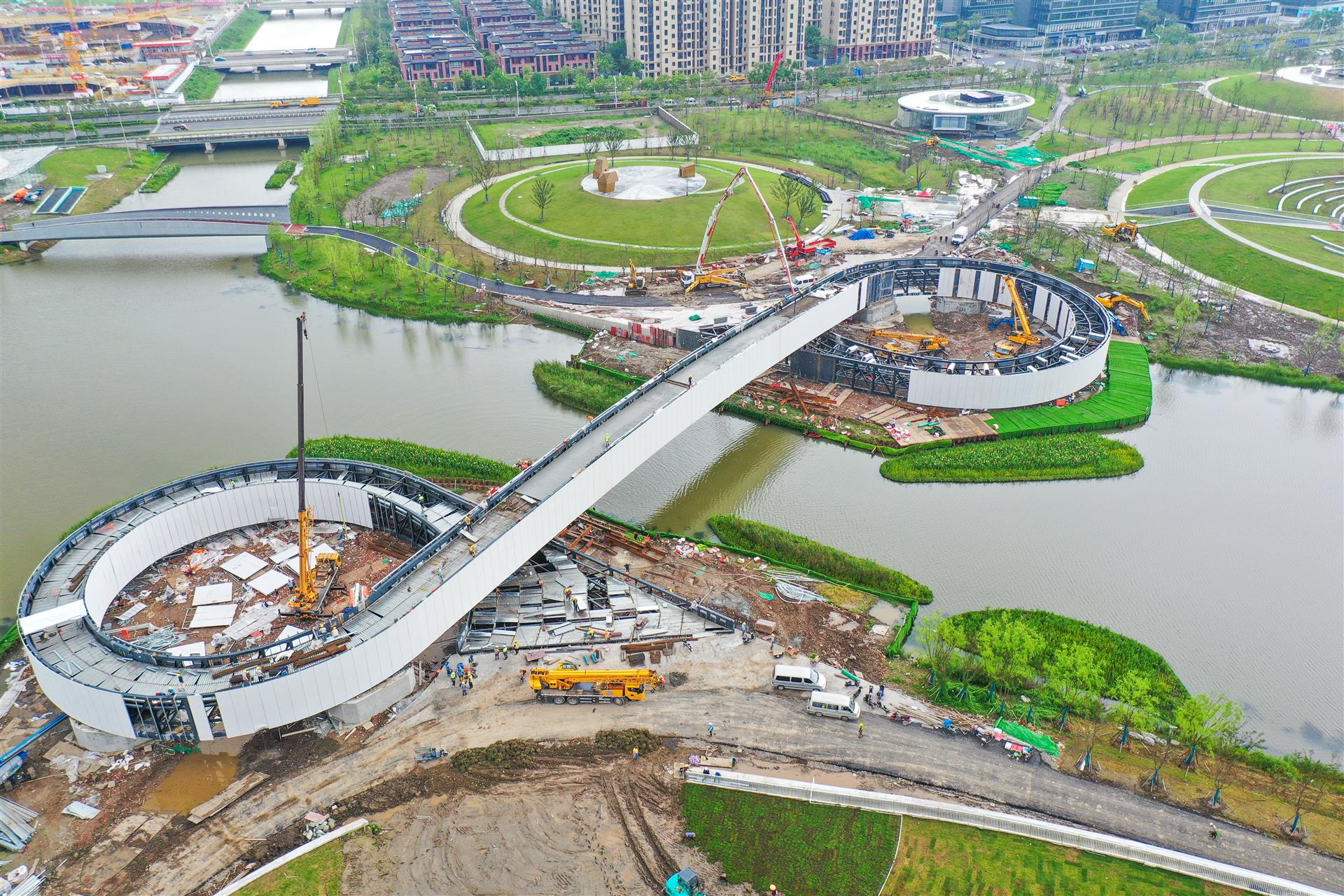 在图纸上,“无限桥”拥有流畅曲线,如彗星划过星空的痕迹,但要落地却十分困难。中建八局该项目负责人介绍,整座无限桥总桥长约340米,以曲线造型为主,对安装精度、协同施工的要求很高。