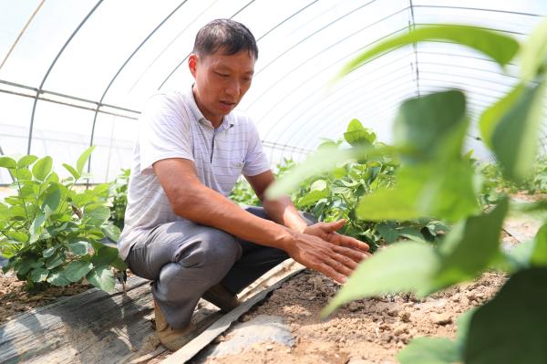 地布防草的成功催生出了另一项技术——免耕种植。在一个“免耕种植”大棚里,种完生菜紧接着就可以种毛豆,不需要翻土。“种完一茬菜后耕翻土地,主要是为了清除杂草,我们的地布技术能很好地解决这一问题。”