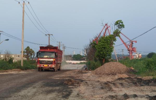 凌晨4时30分左右,一些红色的重型卡车出现在浦锦南路上。附近居民告知,这些红色重卡将拐入闸航路前往码头装载货物。6时左右,每隔一段时间就有一辆红色重卡从闸航路尽头向东行驶,并左拐进入浦业路,再从刘先生家楼下的鲁南路口拐入鲁南路,最终驶入浦锦南路或浦星公路等大道。记者观察发现,从码头驶出的重型卡车基本都选择这条路线,可能因为相较于损毁严重的闸航路,浦业路路况更好,没有监控探头,行驶通畅。