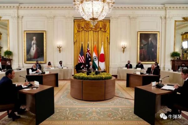 反正有各种解读,但有一种解读,我觉得还比较靠谱:拜登是总统,其他三人都是总理级别,那布林肯,你也来参加一下吧。