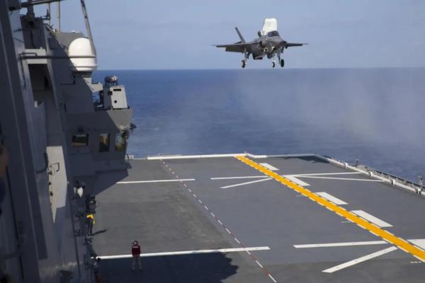 ▲3日,美军F-35B在“出云”级首舰“出云”号上着舰(美国海军官网)