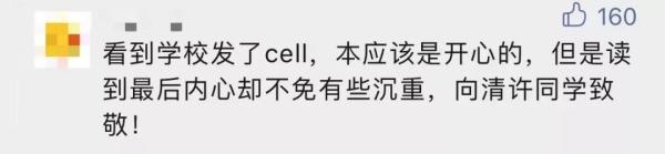 评论区,网友都在向他致敬:“看到学校发了Cell,本应该是开心的,但是读到最后内心却不免有些沉重。”