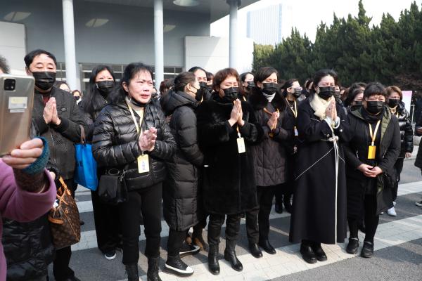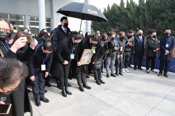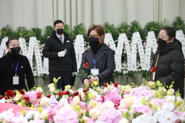 “金派耀菊坛,活兰贞,杨贵妃,曲满春申醉天籁;越枝栖彩凤,神秀英,王熙凤,高谢风尘留余音。”1月16日上午,著名越剧表演艺术家、越剧“金派”艺术创始人金采风遗体告别仪式在龙华殡仪馆举行。亲朋好友手持红玫瑰,在小提琴协奏曲《梁山伯与祝英台》中与一代越剧大师告别。
