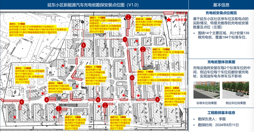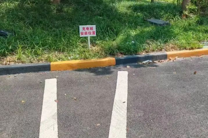 更有心的细节是,在正式动工安装前一周,工作人员在每一个计划安装充电桩的点位旁边,都插上了一个醒目的小牌子,写清楚这里要装充电桩。
