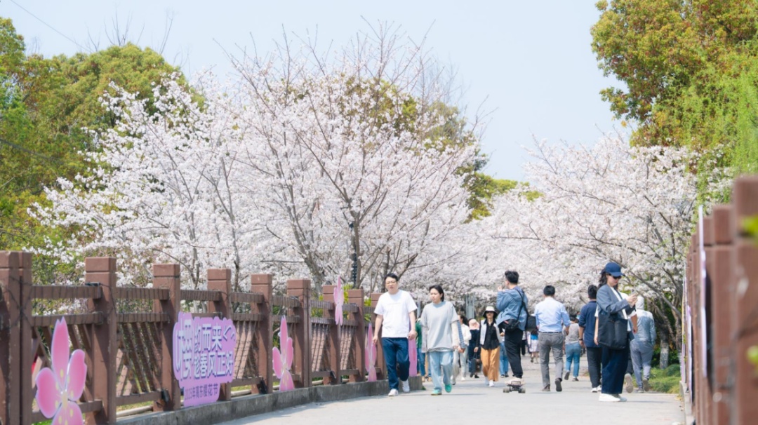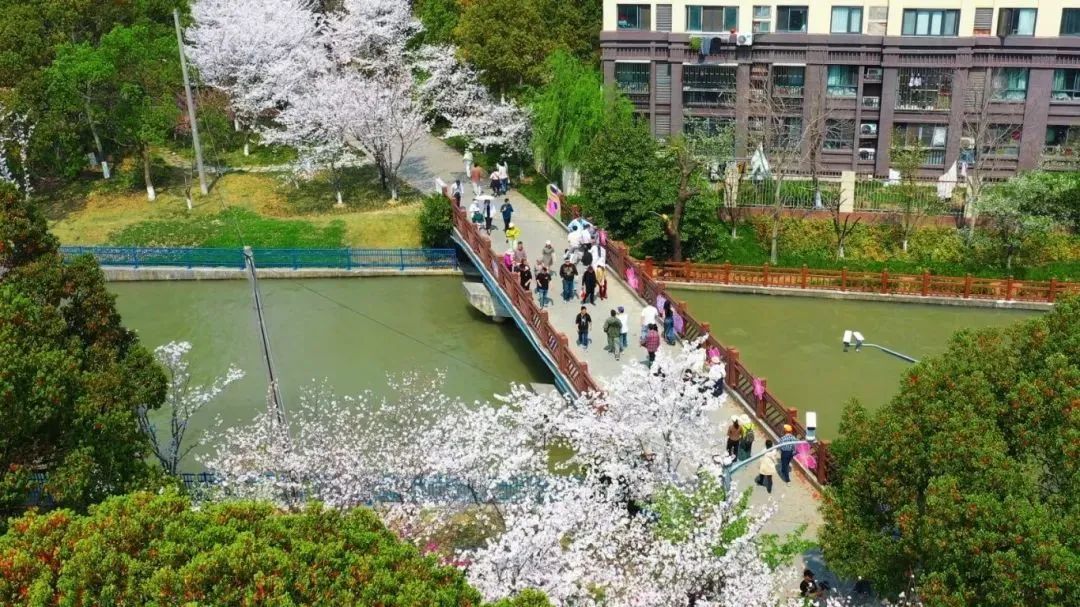 漫步于樱花树下,踩着细碎花瓣铺就的小径,每一步都踏出了春天的旋律。抬头仰望,阳光透过稀疏的花枝,洒下斑驳陆离的光影,给这粉白的世界披上了一层神秘而温暖的光辉。樱花树下,各类花卉争奇斗艳,有多色地被植物,毛鹃、红花檵木、八仙花、美丽月见草……河道旁边的荧光步道在夜晚闪烁着神秘而迷人的光芒,随处可见的樱花荧光图案,仿佛把整个春天都装进了里面,让人置身于梦幻的童话世界。