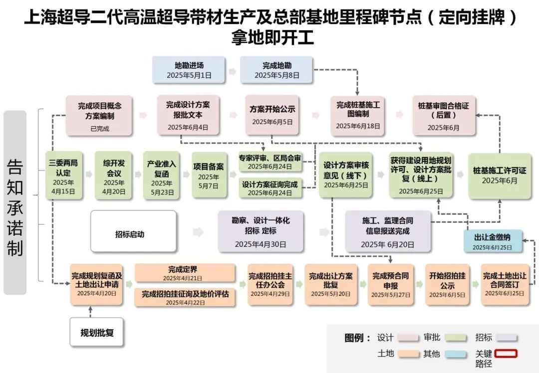 浦东新区规划资源局积极落实市规划资源局关于优化营商环境的工作要求,持续深化行政审批制度改革,提升项目审批效率,不断提升企业感受度,推进重大产业项目落地。在浦东新区规划资源局的指导和支持下,张江科学城建设管理办公室(以下简称“张江科建办”)近日圆满完成超导项目的快速审批工作,项目拿地后创下12小时“多证连发”的新纪录,再次刷新“张江速度”!通过跨前服务、专班协调,“项目经理制”、跨部门流程优化等创新举措,大幅缩短了项目从拿地到开工的时间。这一突破不仅彰显了浦东新区审批制度改革、服务企业的创新成效,也为区域经济高质量发展注入强劲动能。 跨前服务,专班助力响应快 超导项目是上海市重大的产业项目,企业尽早开工投产的需求比较迫切。项目规划审批又面临着多个审批环节,需要协调多个条线,开工时间紧、协调难度大、审批任务重。因此,服务关口前移是缩短审批周期的关键所在。 早在超导项目产业准入阶段,张江科建办就在浦东新区规划资源局的支持下,组建了由规划、土地、建设、环保等多条线专业人员构成的审批服务专班,统筹协调推进该项目,建立线上服务工作群,以企业需求为中心提供“一对一”实时服务,对企业遇到的各类问题,建立快速响应机制,随问随答、即知即办,推动项目设计方案快速稳定,确保项目按期高效推进,力争为企业提供更精准更优质的服务。 方案征询阶段,针对企业项目建设经验不足的症结,张江科建办多次跨前组织市地震、区消防、卫生、交警等各并联审批部门,为企业提供面对面“专家门诊”,让企业“少跑腿”、服务“多到位”。方案会审阶段,浦东新区规划资源局主动对接项目进展,快速推进会审流程,协助优化方案,提升项目建设品质。项目在土地出让前取得所有并联审批部门意见,完成设计方案的优化,为加速审批奠定基础。 方案效果图 方案效果图 后墙不倒,专人护航破“隔墙” 项目推进过程中,张江科建办审批部门通过“挂图作战锚定路径、后墙不倒严守节点、项目经理全程护航”的协同推进机制,跑出审批加速度。“挂图作战”即项目审批全流程图表化、可视化,明确责任部门和完成时限,形成“审批作战地图”,以项目开工为不可动摇的“后墙”,反向推导各环节最迟完成时限,进行项目攻坚。“项目经理”即专人负责,直接协调消防、交警、抗震等部门共同推进,以“项目经理”为企业提供“一对一”全周期管家式服务,破除企业与政府各部门沟通壁垒,推动政府角色从“审批者”向“护航者”转型,确保项目全流程按时按序推进。 审批作战地图 多证连发,拿地开工创新速 围绕拿地即开工的时间节点,张江科建办审批部门进一步优化审批流程,打破路径依赖,由“接力跑”变“并排跑”,通过跨部门协同与流程重组,方案公示、方案评审、部门征询、审图等环节同步进行,每个关键节点有预警、有督办、有落实,针对报建中的难点和堵点,马上“会办、会商、会审”,最大程度打破部门壁垒,提升跨部门协作效率。在区税务局、区不动产登记中心等部门的配合下,最终做到用地规划许可证、设计方案批复、施工许可证、土地不动产权证在12小时内连发。 取得用地规划许可证 张江科建办在浦东新区规划资源局的指导下,通过跨前服务、专班助力、专人护航、流程再造等创新服务,创造了项目落地审批加速新突破。浦东新区规划资源局将持续打造一流营商环境,继续以企业满意度为导向,深化审批制度改革,完善协同服务机制,助力更多项目跑出“张江速度”,为浦东打造社会主义现代化建设引领区提供坚实支撑! 开工仪式照片