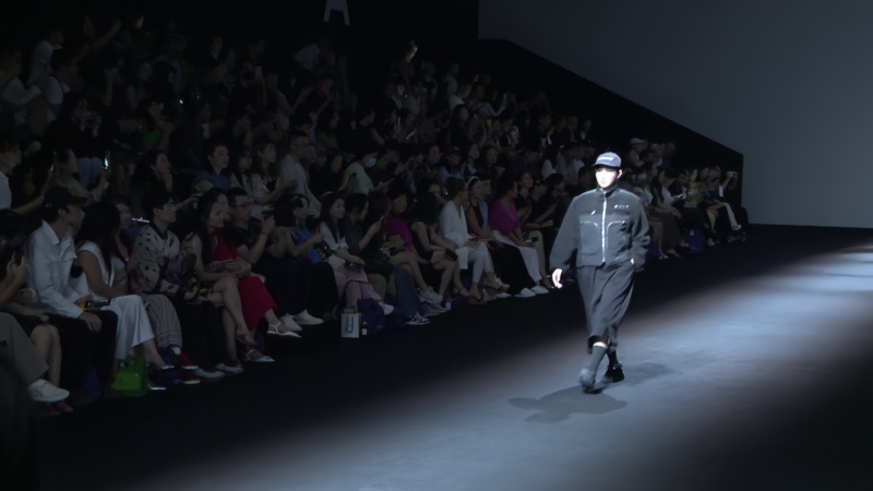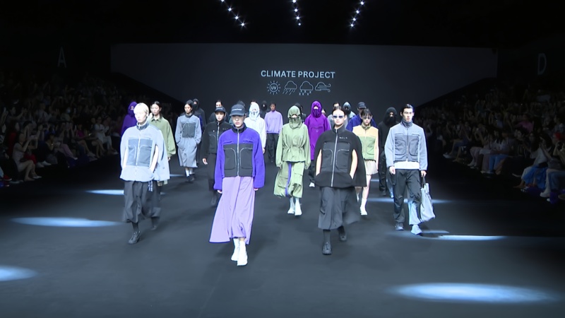在秀场记者看到,Climate project 2026春夏系列延续了品牌“机能与时尚并行”的理念,采用高性能面料,设计师以紫色为本季主色调,向记忆中的传统户外时尚致以敬意,同时将中国传统文化中“静”与“动”的平衡融入到了新系列中,让现场不少观众感受颇深。“我觉得今天看了这场秀非常适合我,因为我也是非常喜欢户外运动的,尤其是退休以后。我今天的穿着与这场秀非常地契合。刚才来的时候我还在考虑穿什么衣服,最后决定就穿这身运动装,很契合这场户外秀。”