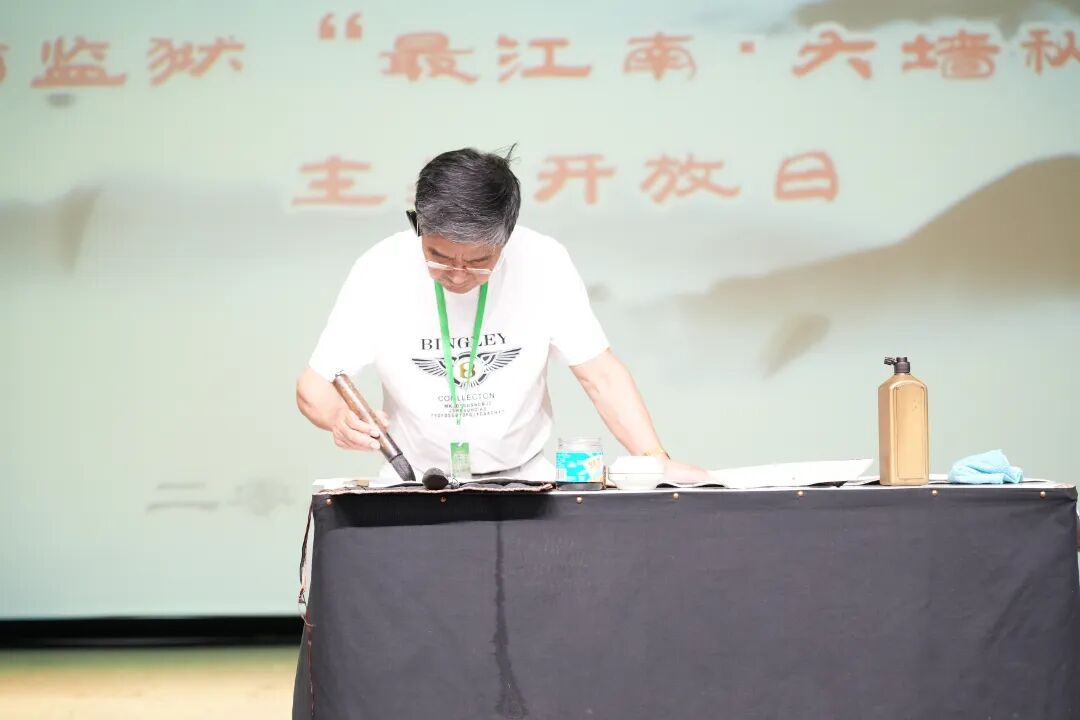 活动中,书法名家周思言为青浦监狱现场挥毫,为改造环境注入浓厚的文化正能量。由服刑人员自编自导自演的音舞诗画《心梦》通过音乐、舞蹈、诗歌与舞台效果的融合,艺术化地展现他们内心的忏悔、对自由的渴望、对亲人的思念以及对未来新生的无限憧憬。真挚的情感与用心的表演,深深打动了在场的每一位观众。 随后,一行人走进“最江南、大墙秋韵”主题艺术作品展厅、服刑人员生活区、炊场、工艺美术工坊、监狱陈列馆等场所,实地感受监狱规范化、人性化的管理环境。服刑人员家属代表在教学楼开展亲情帮教,进一步增强服刑人员改造信心,体现监狱在情感修复与社会融合方面的科学路径。 据悉,青浦监狱始终坚持“以改造人为宗旨”,不断拓展教育改造手段,整合社会资源,推动“产学业一体化”项目落地,助力服刑人员顺利回归社会。特别是在“非遗+矫治”项目中,服刑人员通过学习玉雕、顾绣等传统技艺,不仅掌握职业技能,更在审美创造中实现心灵净化与行为矫治。 刑释人员徐某回忆说,入狱后他才更清醒地认识到自由的可贵。在监狱民警耐心教育和反复开导下,他凭借着艺术基础,在监狱内网上报名参加了玉雕班。回归社会后,他买了一台玉雕机,就从这一台机器开始,一步步坚持做玉雕工作。至今,他已成功回归社会九年,并始终在这条路上踏实前行。