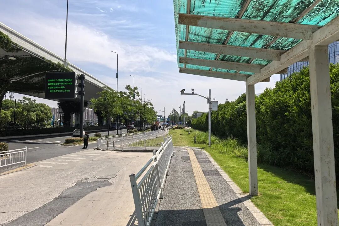 此次专项整治聚焦人行步道增设、安全护栏增加、围墙粉刷与美化等铺装围墙方面和绿化空间整理、停车场入口优化等绿化标识方面。“小到步道砖松动、栏杆锈蚀,大到绿化带断带、盲道中断,均纳入我们的整治清单。”进博会市容市貌整治项目项目经理夏东民向记者介绍,项目于9月1日开工,经过一个多月的修缮已经全部完工,相比较之前可以说是焕然一新。记者在现场看到,崧泽大道诸光路公交站区的改造升级尤为引人注目。通过施工团队精准发力,雨棚全面翻新、护栏扶正加固、塌陷路面重铺沥青,候车更安全舒适,车辆通行也平稳顺畅。