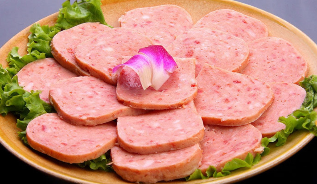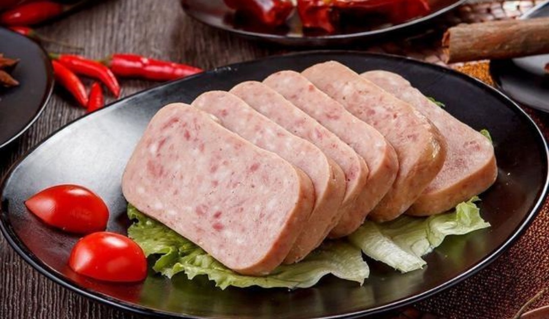 根据我国猪肉糜类罐头国标(GB/T 13213-2017)的规定,午餐肉淀粉含量通常不能超过 7%,优级火腿猪肉罐头的淀粉含量不能超过 3.5%,比一勺米饭的淀粉还少。