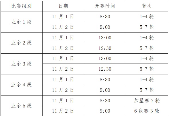 6.对局双方根据编排,每轮随机使用黑棋或白棋,对局由裁判根据比赛情况介入判罚。