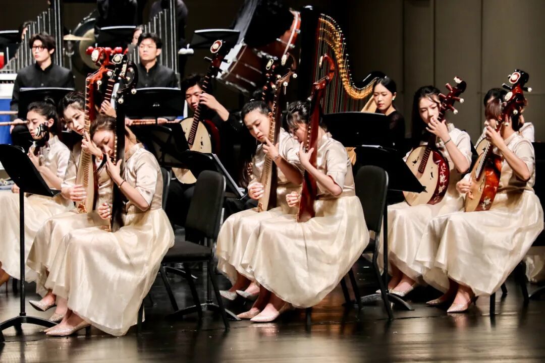 随着充满感染力的弦乐声响起,二胡、琵琶、女声独唱等一系列精心编排的民族乐章次第奏响,如同一幅流动的国乐长卷,将红色记忆、传统文化与时代精神紧密相连。