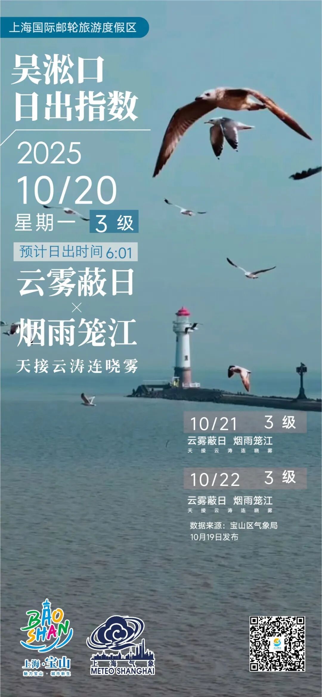 【吴淞口日出指数】10月20日3级 云雾蔽日×烟雨笼江