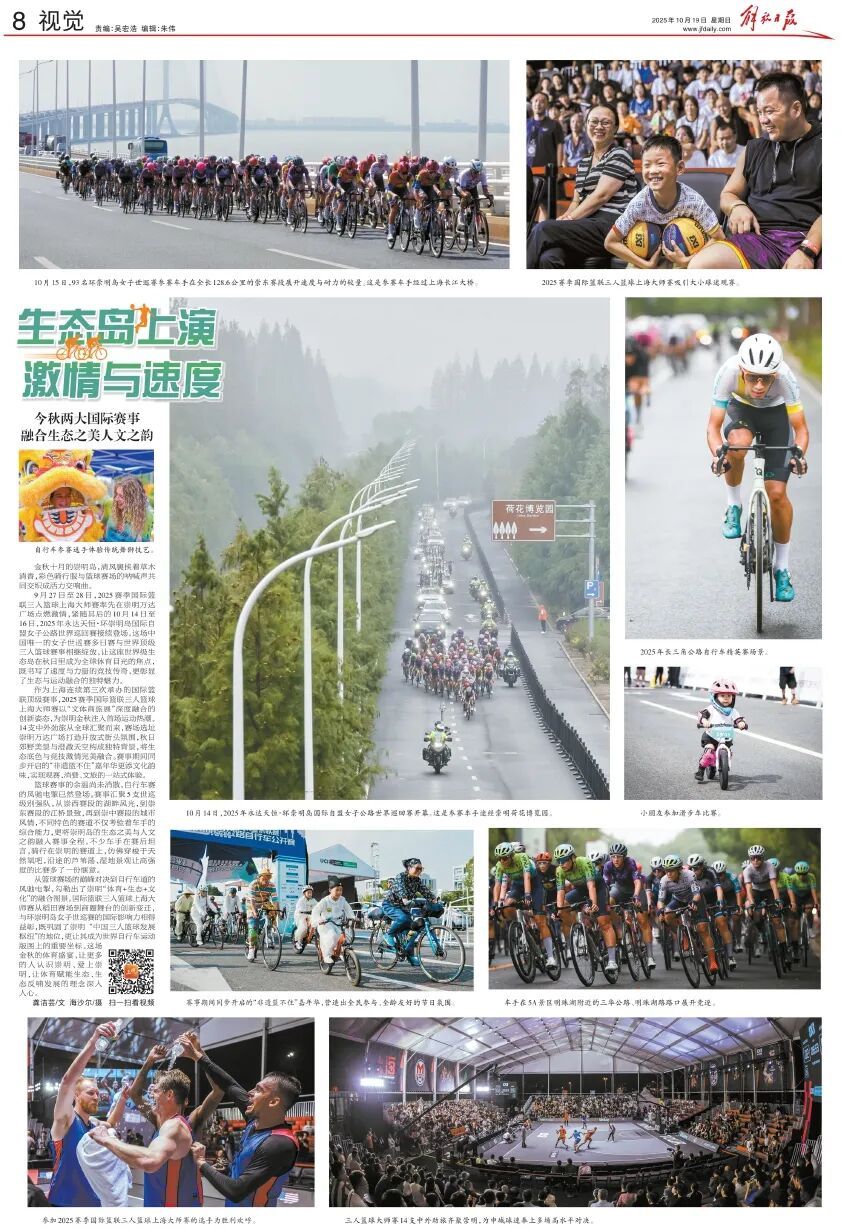 从篮球赛场的巅峰对决到自行车道的风驰电掣,勾勒出了崇明“体育+生态+文化”的融合图景。国际篮联三人篮球上海大师赛从稻田赛场到商圈舞台的创新变迁,与环崇明岛女子世巡赛的国际影响力相得益彰,既巩固了崇明“中国三人篮球发展枢纽”的地位,更让其成为世界自行车运动版图上的重要坐标。这场金秋的体育盛宴,让更多的人认识崇明、爱上崇明,让体育赋能生态、生态反哺发展的理念深入人心。