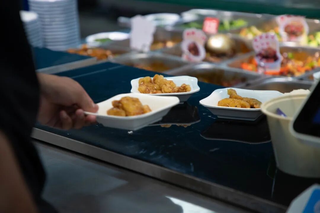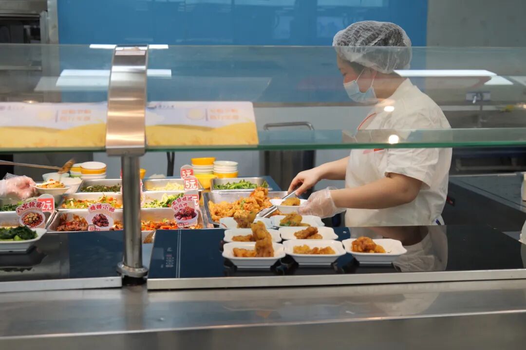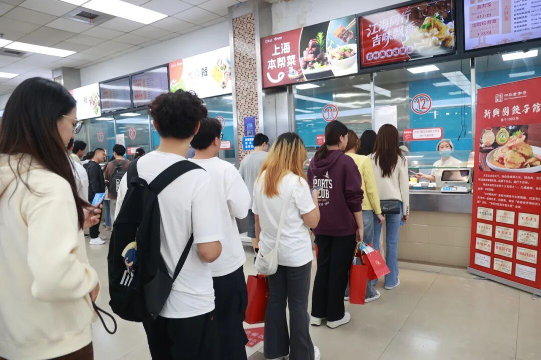 吉林美食抓住你的胃!在邯郸校区旦苑餐厅,吉林市特色知名餐饮企业厨师带来锅包肉、溜肉段等当地风味美食。中午饭点一到,吉林菜档口前就排起了长队,大家手攥着美食品鉴券,翘首以盼。一盘盘色泽金黄、口味酸甜的锅包肉冒着热气,香气扑鼻。
