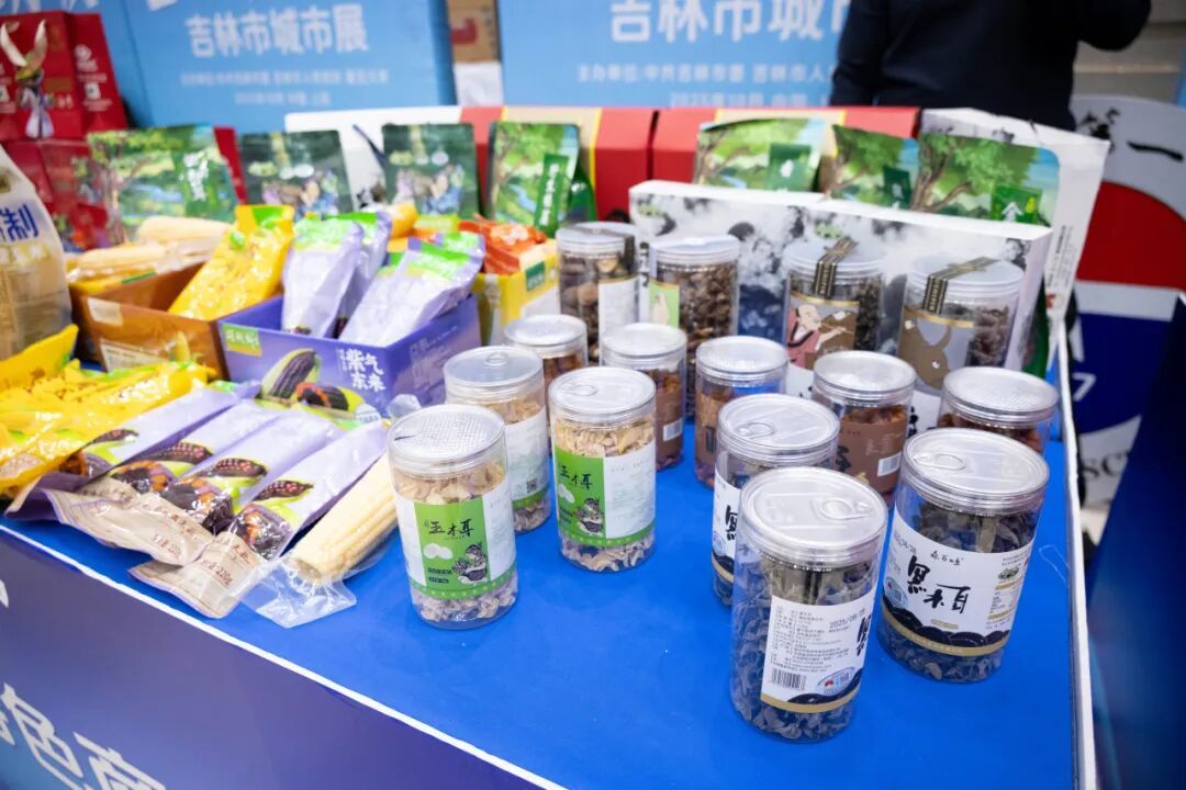 农特产品展区分摊位陈列,吉林大米、蜂蜜、榛果等各色产品琳琅满目。吉林市丰满区摊位的一名负责人向大家介绍:“这是我们长白山野生椴树白蜜,获得了农产品国家地理标志,加工技法被评为省级非物质文化遗产。”