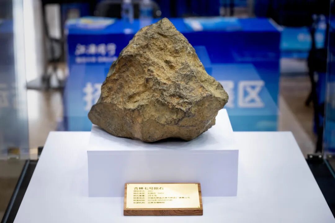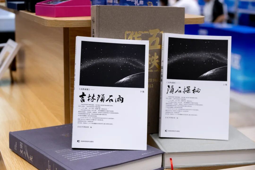 “仰观宇宙、俯察大地、展陈万象、馆校融合” 的标语下,博物馆建设展区围满师生。“吉林七号陨石”前,大家贴着玻璃展柜拍摄。