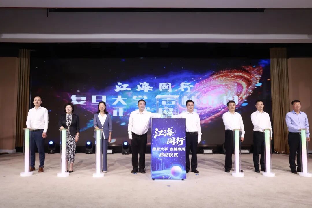 今天上午,复旦大学校长、中国科学院院士金力,复旦大学党委常委、常务副校长许征,复旦大学党委副书记钱海红,复旦大学党委常委、组织部部长艾竹;中共吉林市委书记胡斌,中共吉林市委常委、组织部部长冀广起,中共吉林市委常委、副市长陈洪治,吉林市委秘书长、市委办公室主任明继国在复旦大学吴文政报告厅共同启动“复旦大学·吉林周”。上海市委副秘书长、上海市政府参事燕爽,复旦大学相关部门(院系)负责人、专家教授,吉林市委市政府相关部门负责同志等出席活动。