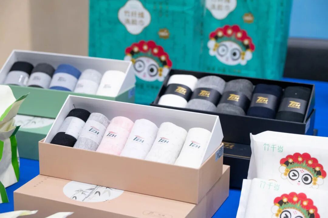 特色商品展区,竹纤维毛巾、袜子叠得方方正正,玉米木耳人参、大小电子元件摆得整整齐齐。“这款是我们具有自主知识产权和发明专利的竹纤维产品,还有抗菌和抑菌效果。”吉林化纤摊位负责人介绍道。