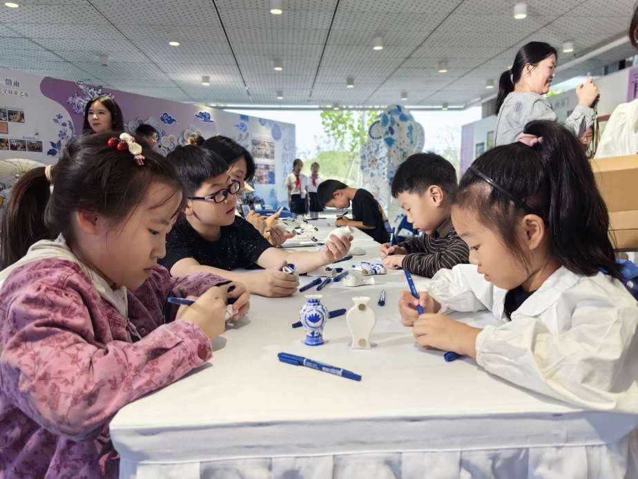 而在动态体验区里,青花瓷工坊的 DIY 钥匙扣、AI 拉坯机,漂漆画工坊的专属书签,皮影戏台的童真配音,编织挑战的集体创作,吸引了上百个亲子家庭沉浸式感受传统艺术魅力。跨屏共创环节,集团携手呼和浩特实验中学东河校区开展线上手拉手活动,“蒙古草原风情”展区,两地师生实时连线,以艺为桥传递友谊。